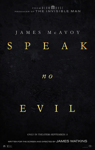 Speak No Evil vlastně ani za horor nepovažuji, spíše hodně temný thriller. Hranice mezi těmito žánry je občas dost tenká a někdy záleží prostě na pohledu každého. U některých snímků to dovedu rozlišit, ale tady v tom jsem nic hororového neviděl. Líbilo se mi postupné budování a zvedání napětí. McAvoy si roli šíleného psychopata vyloženě užívá. Určitě to celé je lehký nadprůměr. Přesto ale určitě nemám potřebu to zhlédnout znovu. Řekl bych, že obdobných filmů již vzniklo mnoho. Tady se mi líbila celková atmosféra. Přemýšlím, jestli se mám někdy časem podívat i na originální snímek ze Skandinávie. Protože jestli toto je vyloženě remake, viděl bych něco jiného? Na druhou stranu jsem rád, že jsem do kina zavítal, protože tam v podstatě chodím jen a pouze na čistokrevné horory. Tady si nějak nevybavím žádnou konkrétní scénu, která by mi uvízla v hlavě. Jedno zhlédnutí je za mě akorát. Líbilo se mi, jak se postava Paddyho postupně mění a my jen vidíme, jaký je ve skutečnosti psychopat. To pozvolné vykreslování napětí se povedlo a možná právě kvůli tomu jsem tomu dal lehce nadprůměrné hodnocení. Ale jinak to v podstatě není pro mě vyloženě zapamatovatelný snímek. Zkrátka jednou a dost.
